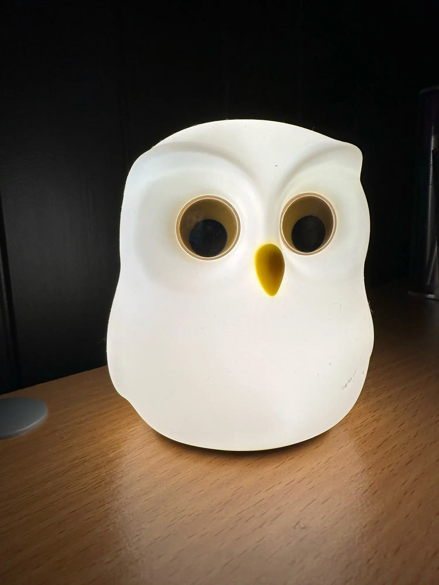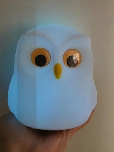 Terrible scam. If you want a small, convenient, and cute night light for yourself, this is the one. Actually, I didn't plan to buy it, but because I broke a ceramic owl-shaped night lamp, I needed to replace that loss with something. Believe me, it truly deserves its money. Silicone owl, soft to touch; movable eyes, a button for adjusting the light is found when pressing the nose. In multi-color mode, it changes light when touched by silicone, but don't worry, only if you 'squeeze' the owl. The package came with a charger (Taispy), but without the power adapter, so please keep that in mind. The owl is CHARGING. That is, you can put it on charge, and it will still glow; once charging is complete, it will continue to glow for a long time. Very convenient. I can't get enough of this purchase. I recommend it to everyone. It still has some kind of mini sound after the charger is turned off, so in theory, it can be reflashed and customized with some own sound.